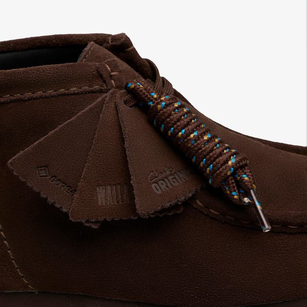 Enhanced with GORE-TEX® for protection against wet weather, our unmistakable Wallabee Boot Gore-Tex arrives in dark brown suede for ultra-versatile wear. Butter-soft suede lends a premium look and feel, while its tough Vibram® sole channels an urban-hiking aesthetic that’s fit for all seasons. It’s complete with three signature logo fobs and a spare set of laces too, for a details-focused finish that stays true to Originals DNA.