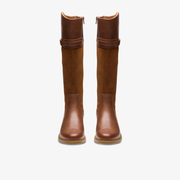 Enjoy easy sophistication in the Maye Carly boots. This high-shaft design proves that it’s all in the details. The classic style features a rounded collar, a dual material construction, a trendy block heel, and a gold tone linked accent.