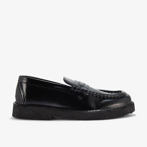 Available in black patent leather upper atop a black pebble crepe sole.