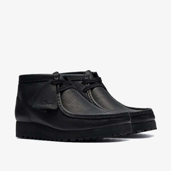 Crafted with a premium leather upper, the Black monochrome version features a black crepe sole with a black rubber outsole, providing durability and grip.