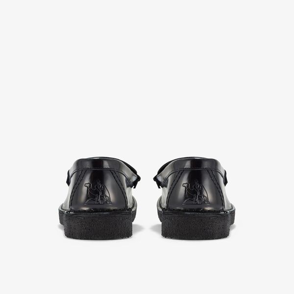 Available in black patent leather upper atop a black pebble crepe sole.